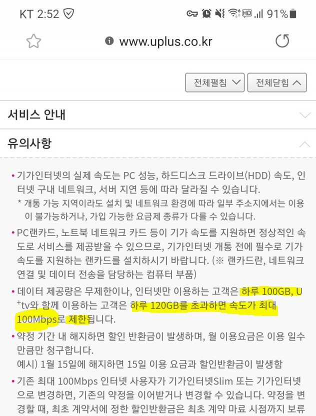 (쉽게 말해, 하루에 일정 용량 이상의 인터넷을 사용하면 속도를 확 줄여버린다)