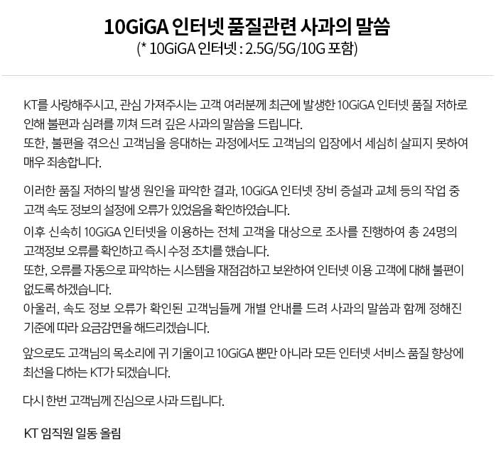 해당 사건은 사용자의 기기 문제가 아닌 통신사 자체적으로 원격으로 해결할 수 있었던 사건인데, 문제는 사용자가 이의 제기를 하지 않았다면 계속 100mb 속도로만 사용해야 했던 것이다.