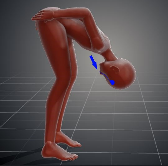 1-1) 상체를 90도 숙인 후 고개를 한쪽으로 돌려준다.