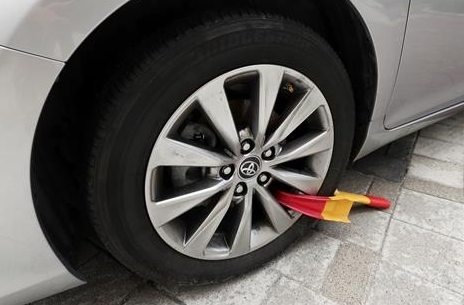 외부 차량으로 확인이 되어 차를 이동시켜달라는 부탁을 했지만 응하지 않을 시, 자동차 전용 자물쇠를 채우자