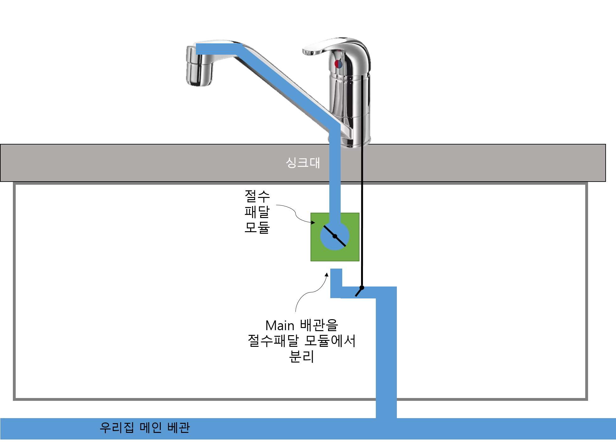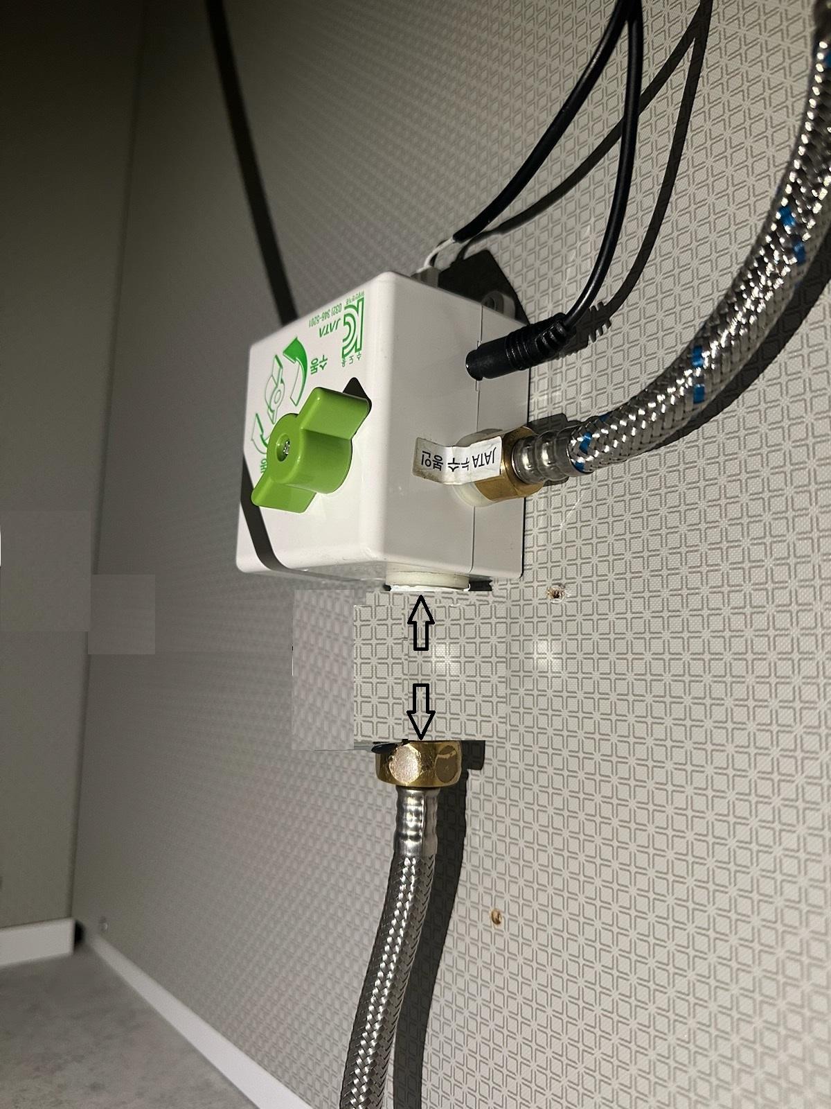 4) 다행히, 싱크대 수전으로 올라가기 전에 절수패달 어댑터(모듈)를 거쳐가는것을 확인했다.