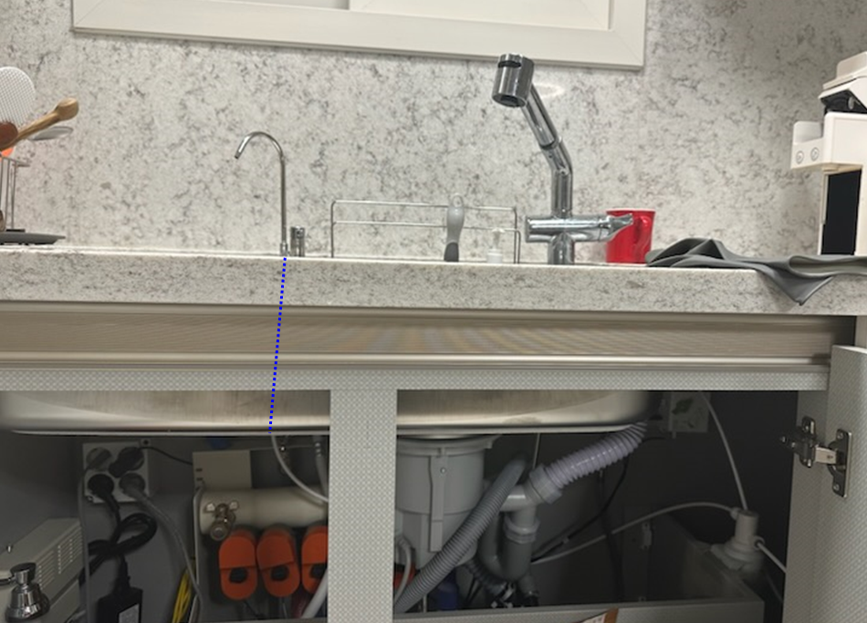 식기세척기 어댑터가 없었으면 아래 좌측 그림과 같이 그 자리에 정수기 어댑터를 설치했을 것이다. 하지만 그 공간에 이미 어댑터가 설치되어 있어서 우리는 오른쪽 그림과 같이 설치하였다.